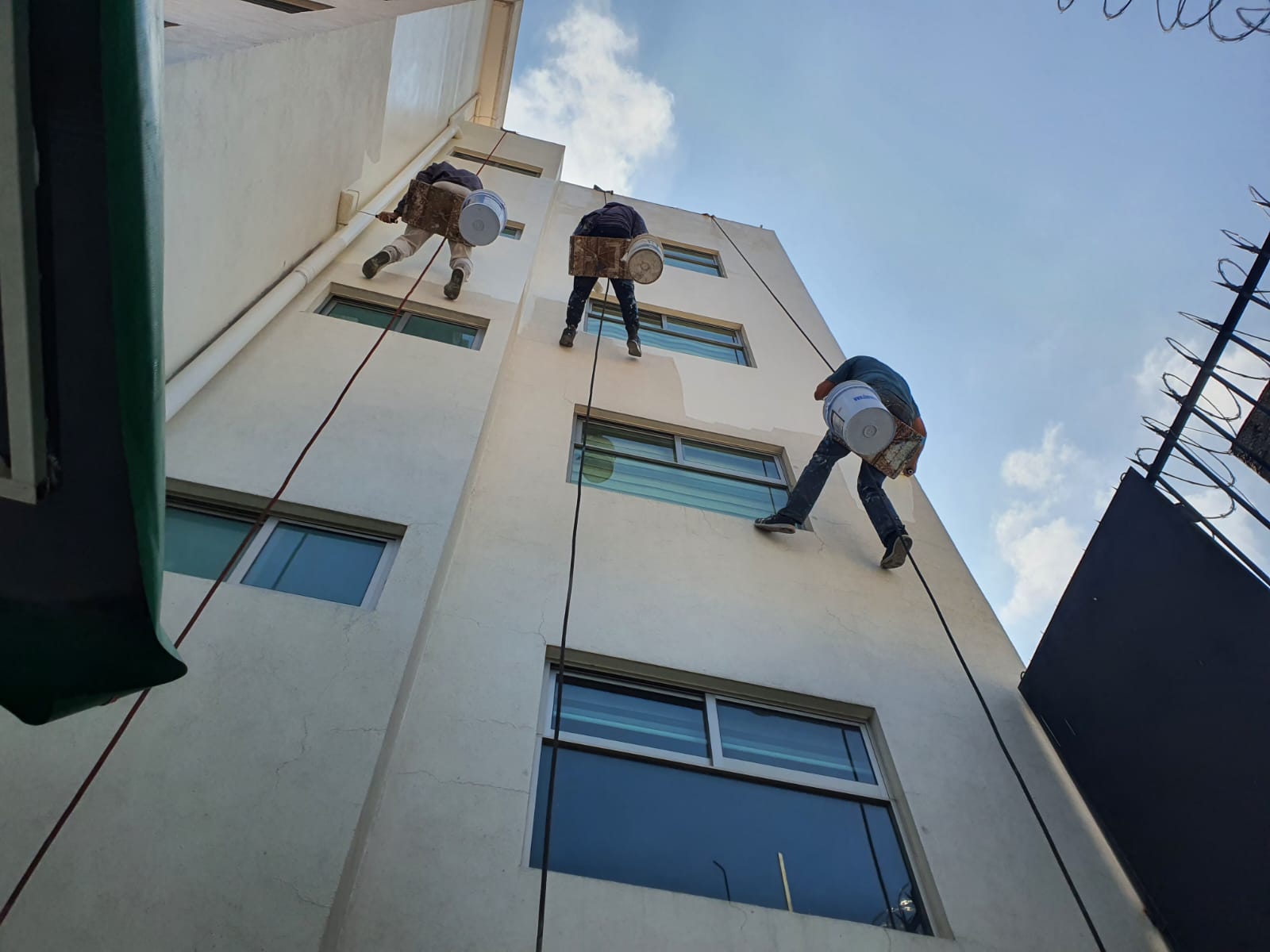 Somos una empresa especializada en el mantenimiento y pintura de fachadas, utilizando técnicas seguras como andamios y acceso por cuerda, ideales para edificios, oficinas y espacios de difícil acceso.